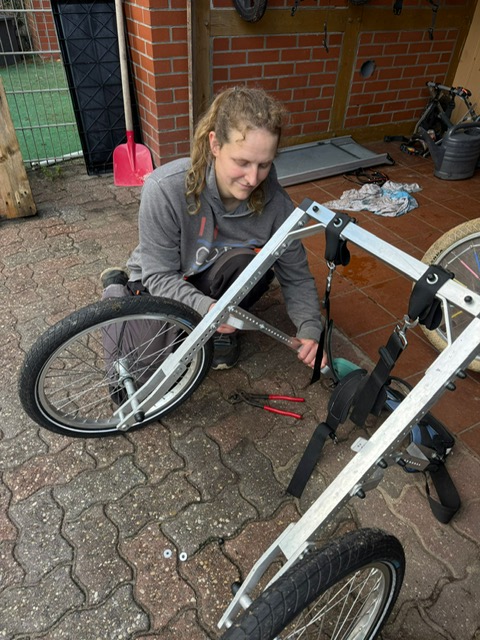 Nach anfänglichen Schwierigkeiten aber flitzte Lia mit einem individuell angepassten Rollwagen stundenlang mit mir querfeldein durch Wald und Wiesen und unterschied sich kaum von einem anderen Hund. Durch Lia verlor ich die Angst vor dem Umgang mit einem gehandicapten Hund.